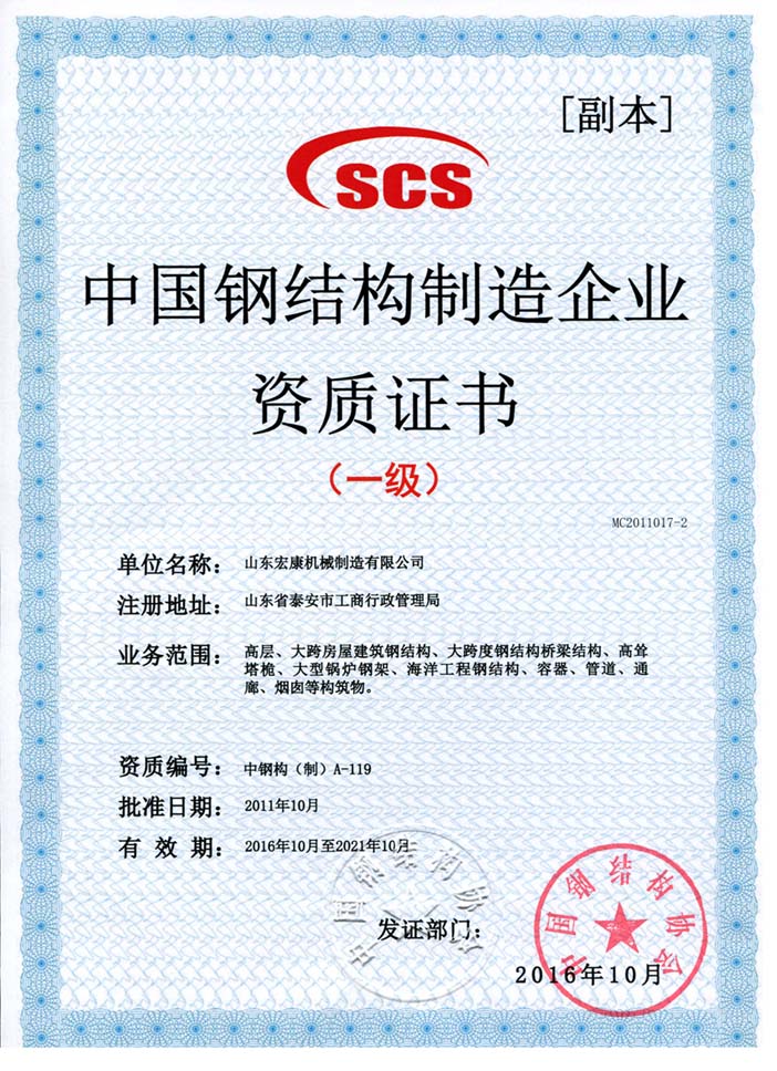 中國鋼結(jié)構(gòu)制造企業(yè)資質(zhì)證書